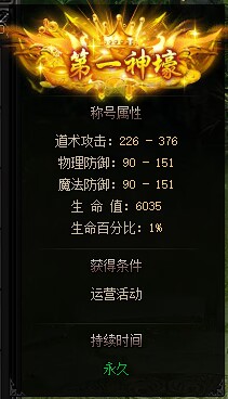 5.稱號:第一神豪(生命屬性百分之1)